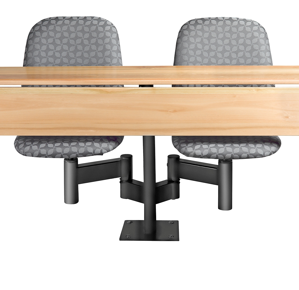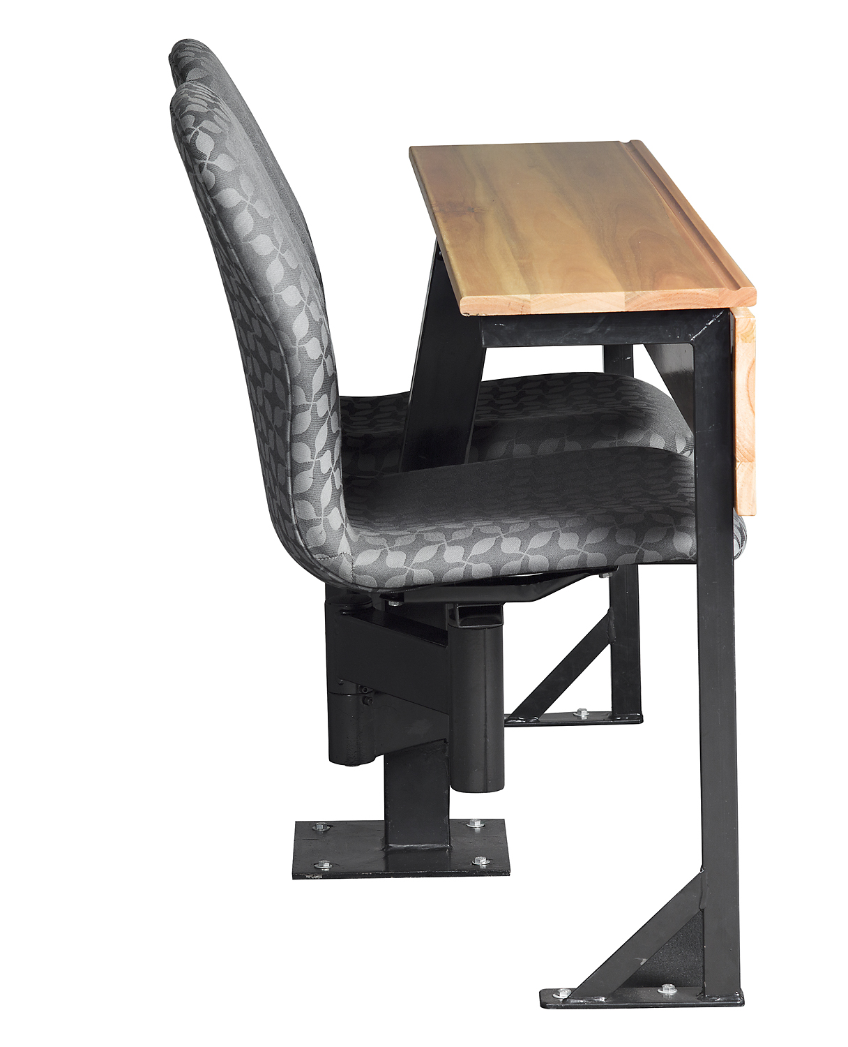 The double swivel seat with memory return mechanism, designed for tertiary institutions (Universities, Colleges, Technikons, and Schools.) The 360degree swivel mechanism allows interaction between students, behind and in front of them. This system integrates the writing tablet support into the main frame.