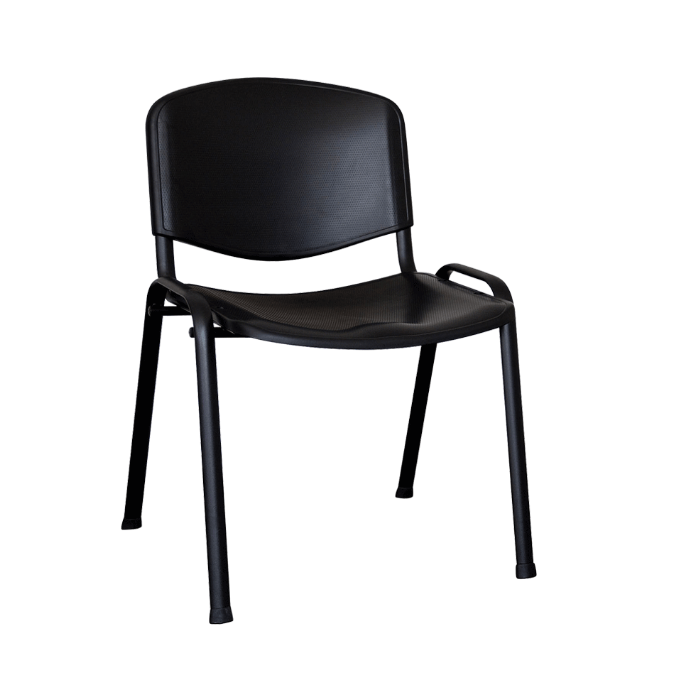 The Stacker 500 has a black epoxy powder coated 4 legged stackable frame with a choice of an upholstered or a plastic seat and back.
